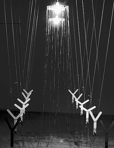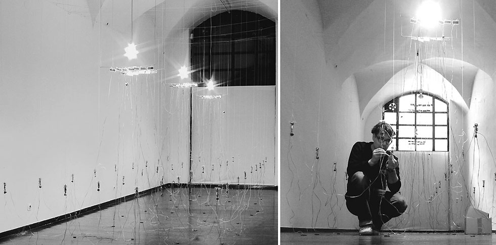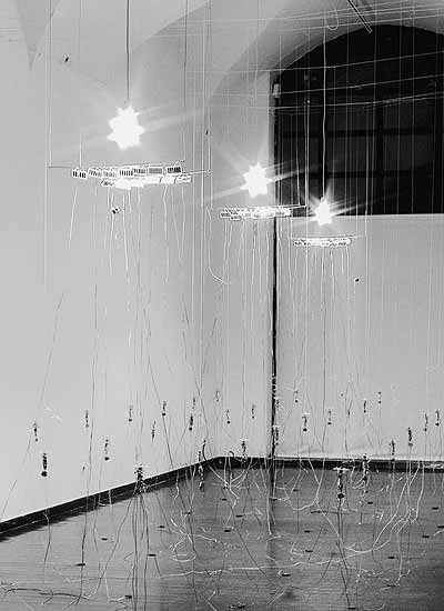 seine kinetische Klang-und Lichtinstallation im Museum Schloss Moyland; Teilchen,